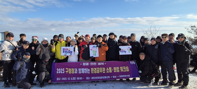 서울 동대문구 환경공무관들이 연말을 맞아 구청장과 함께 산에 올랐다. 쓰레기 봉투 대신 배낭을 메고 나란히 걸으며 ‘워킹 시티, 동대문’ 비전을 공유하는 시간이었다.동대문구는 6일, 경기 하남시 검단…