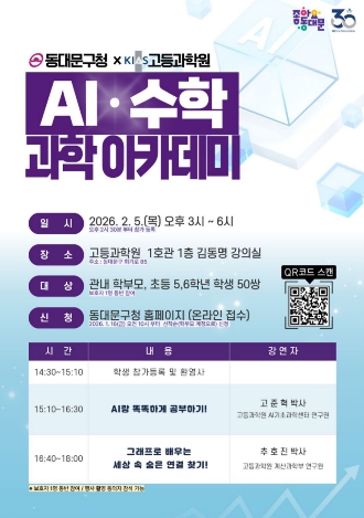 서울 동대문구가 겨울방학을 맞아 홍릉에 자리한 고등과학원(KIAS)과 손잡고 ‘AI·수학 과학아카데미’를 연다. 아이 혼자 ‘학원’으로 향하는 대신, 부모와 함께 강연장을 찾아 같은 내용을 듣고 집으로 …