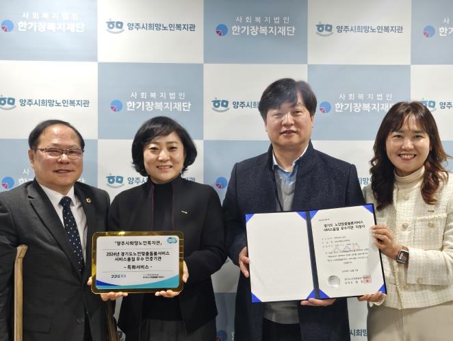 경기도 노인맞춤돌봄·응급안전안심서비스 우수 수행기관 인증제는 경기도 내 수행기관 중 경기도형 서비스 품질관리 기준선을 유지하고, 우수 사례 확산이 가능한 기관을 선정하는 제도이다. 2024년에는 노인맞춤돌봄서비스사업 수행기관 8개소, 응급안전안심서비스사업 수행기관 2개소 등 총 10개 기관이 선정됐다. 양주시희망노인복지관은 ‘특화서비스 분야’에서 우수 수행기관으로 선정돼 이날 인증서 전달 및 현판식이 진행됐다.
