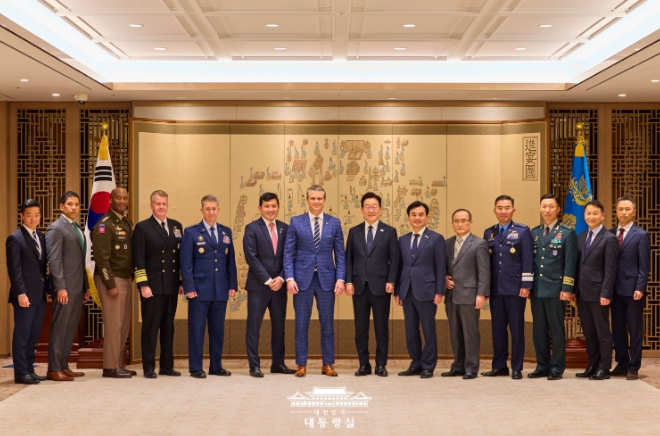 [시사월드뉴스서울, 김부기기자] 이재명 대통령은 한미안보협의회의(SCM : Security Consultative Meeting) 참석을 위해 한국을 방문한 피트 헤그세스 미국 전쟁부장관의 예방을 받고 한미동맹이 미래형 포괄적 전략동맹으로 심화 발전해 나가는 데 있어 헤그세스 장관의 중요한 역할을 당부했다.