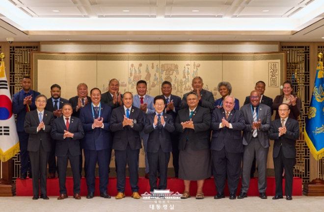 [시사월드뉴스서울, 김부기기자] 이재명 대통령은 제6차 한-태평양도서국 외교장관회의 참석을 위해 방한한 태평양도서국 외교장관 일행을 접견했다.