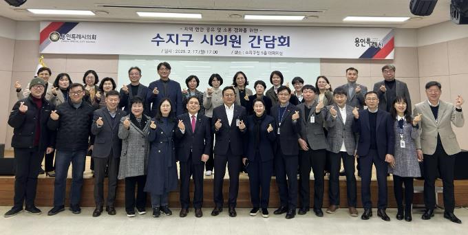 이창식 용인특례시의회 부의장을 비롯한 지역 시의원과 이영민 수지구청장, 구 부서장, 수지구 11개 동장 등이 참석한 이날 간담회에서 구는 2025년 제1회 추가경정예산 편성 방향을 설명하고, 생활밀착형 사업 추진을 위한 시의회의 협조와 지원을 요청했다.