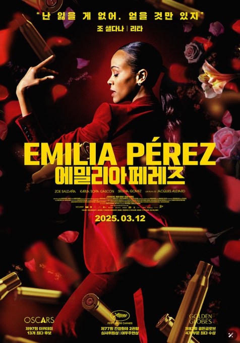 세 배우의 열연이 빛나는 아카데미 최다 후보작 '에밀리아 페레즈'는 현재 전 세계 영화제 103개 부문 수상, 239개 부문 후보에 오르며 높은 작품성을 입증하고 있으며, 타임지, 사이트 앤 사운드, 인디와이어, 더 가디언, 더 할리우드 리포터, 베니티 페어 등 해외 유수 매체로부터 ‘올해 최고의 영화’로 뽑히며 뮤지컬 영화의 새로운 역사를 써 내려가고 있다.