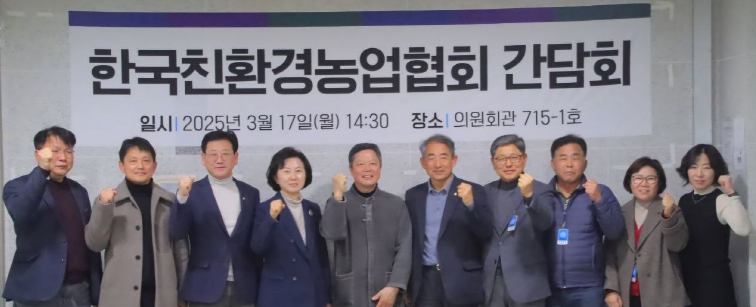 17일 한국친환경농업협회는 국회 농림축산식품해양수산위원회 소속 송옥주(경기 화성갑)·윤준병(전북 정읍·고창) 의원과 산업통상자원중소벤처기업위원회 소속 김정호 의원(경남 김해을) 등 더불어민주당 국회의원들과 간담회를 가졌다. 이들은 ▲친환경인증 농지제도 개선 ▲탄소중립을 위한 농식품 인증제 선진화 ▲공공급식의 친환경농산물 이용 확대 ▲기후위기에 따른 친환경농업 재해지원 법제화 ▲공익에 기여하는 친환경 직불 예산 확대 ▲친환경농업 현장 지원 기관 설립 및 인력 육성 등을 위해 협력하기로 뜻을 모았다.