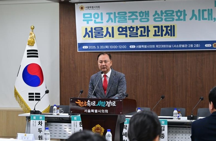 [시사월드뉴스서울, 이승은기자] 이병윤 서울특별시의회 교통위원장(국민의힘, 동대문구1)은 3월 20일 오전 10시, 서울시의회 제2대회의실에서 개최된 “무인자율주행 상용화 시대, 서울시 역할과 과제” 토론회에 참석해 서울시의회 차원의 적극적 노력을 다짐했다.