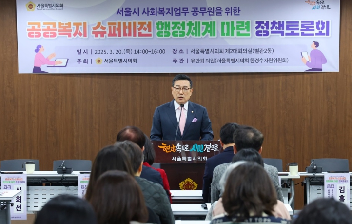 [시사월드뉴스서울, 이승은기자] 서울특별시의회 유만희 의원(강남4, 국민의힘)이 주관한 '서울시 사회복지업무 공무원들을 위한 공공복지 슈퍼비전 행정체계 마련 정책 토론회'가 현장에서 활동하는 사회복지직 공무원들의 적극적인 참여 속에 20일 서울시의회 제2대회의실에서 성황리에 마쳤다.
