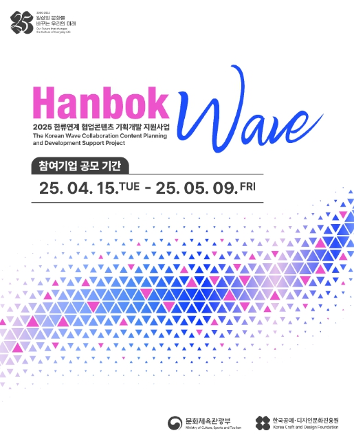 문화체육관광부는 한국공예·디자인문화진흥원과 함께 잠재력과 기술을 갖춘 한복 기업과 한류 문화예술인이 만나 한복 상품을 개발하는 ‘한복웨이브’ 사업을 추진하고 있다. 올해로 6회째를 맞이한 ‘한복웨이브’ 사업을 통해 2024년에는 배우 김태리 씨, 2023년에는 배우 겸 가수 수지 씨, 2022년에는 전 피겨스케이트 선수 김연아 씨와 함께 한복 고유의 아름다움을 세계에 알렸다.