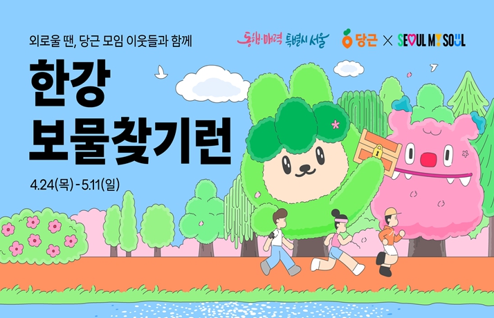 서울시는 당근과 함께 한강공원 3곳(▲반포 ▲망원 ▲뚝섬)에서 4월 24일부터 5월 11일까지 ‘한강 보물찾기런’ 행사를 진행한다. 이번 행사는 시민들이 이웃과 함께 걷고 달리며 보물을 찾는 과정에서 소소한 성취감과 즐거움을 느끼고, 자연스럽게 서로 교류해 외로움을 해소할 수 있도록 기획됐다.