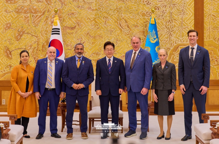[시사월드뉴스서울, 김부기기자] 이재명 대통령은 아미 베라(Ami Bera) 하원 동아태소위원회 간사 등 공화·민주 양당 의원으로 구성된 미국 의회 코리아스터디그룹 대표단을 접견하고 최근 중동 전쟁, 한미관계, 한반도 문제 등에 대해 의견을 나눴다.
