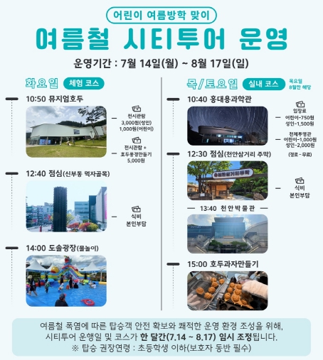 • 천안시, 7~ 8월 ‘혹서기 시티투어’ 코스 운영