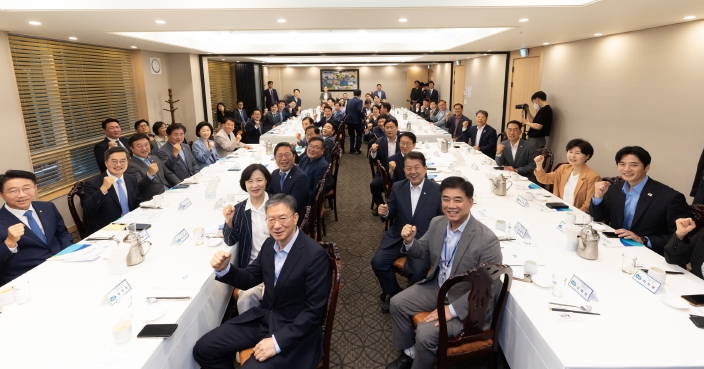 민선 8기 출범이후 ‘야당 도지사+야당 국회의원(경기)’으로서의 정책 간담회는 몇차례 있었다. 하지만 오늘은 ‘여당 도지사+여당 국회의원’으로 입지가 달라진 상황에서의 첫 정책간담회였다. 남다른 의미가 있는 자리였던만큼 민주당 경기도 국회의원 53명 중 6선의 추미애-조정식, 5선의 정성호-윤호중-김태년 의원 등 42명이 참석했다. 이광재 전 의원 등 원외위원장 6명, 성남시분당구을 지역위원장이었던 김병욱 대통령비서실 정무비서관까지 모두 49명이 참석했다.