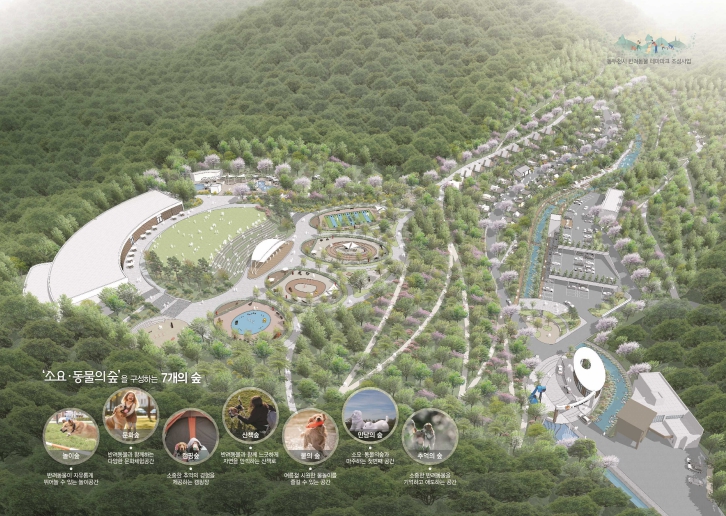 핵심 공간은 도민의 여론조사시 가장 관심 가진 산책숲, 캠핑숲이 조성되어 자연 속 산책 및 체험행사, 교육프로그램이 가능하다. 이 밖에도, 반려동물 문화센터, 놀이터, 공연장, 물놀이장 등으로 구성된다.