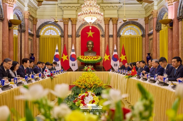 [시사월드뉴스서울, 김부기기자] 베트남을 국빈 방문 중인 이재명 대통령은 22일(현지시간) 오후 베트남 국가주석궁에서 또 럼 당서기장 겸 국가주석과 정상회담을 갖고, 양국 간 포괄적 전략 동반자 관계 발전 방안과 지역·국제 정세 등에 대해 심도 있게 논의했다고 이규연 청와대 홍보소통수석이 서면 브리핑했다.
